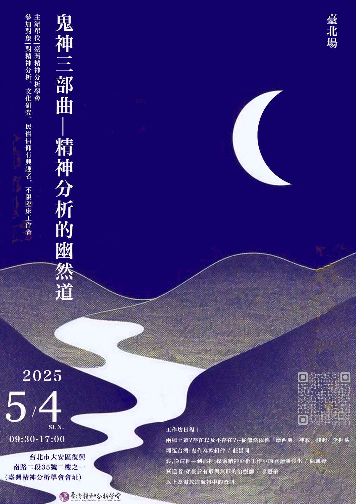 【臺灣精神分析學會】跨領域應用工作坊:鬼神三部曲—精神分析的幽然道(台北場)