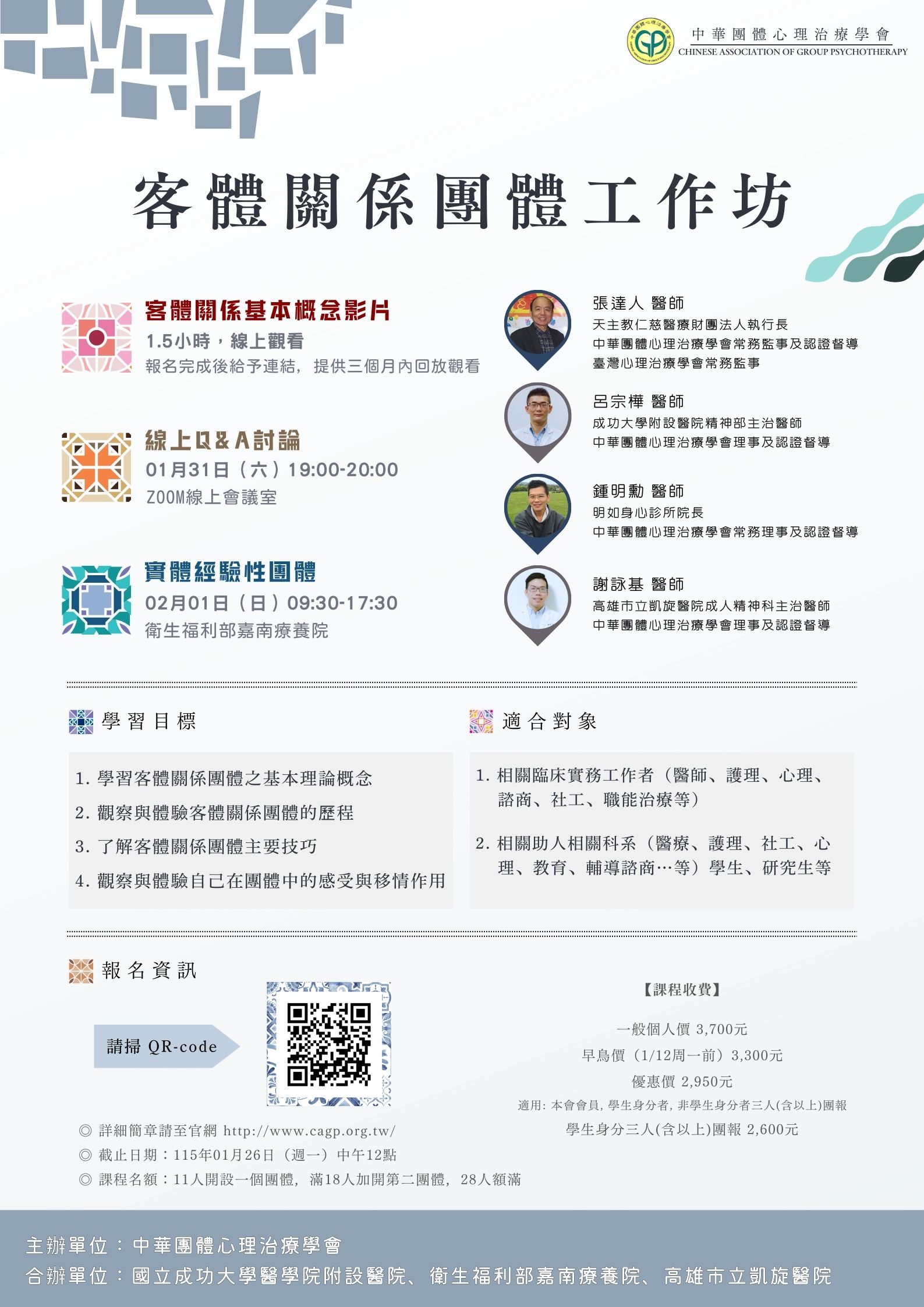 【中華團體心理治療學會】1/31、2/1 客體關係團體工作坊